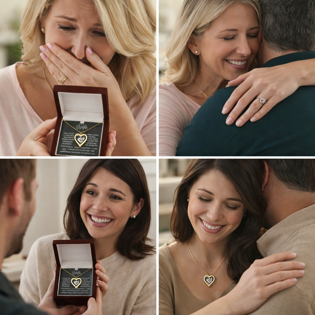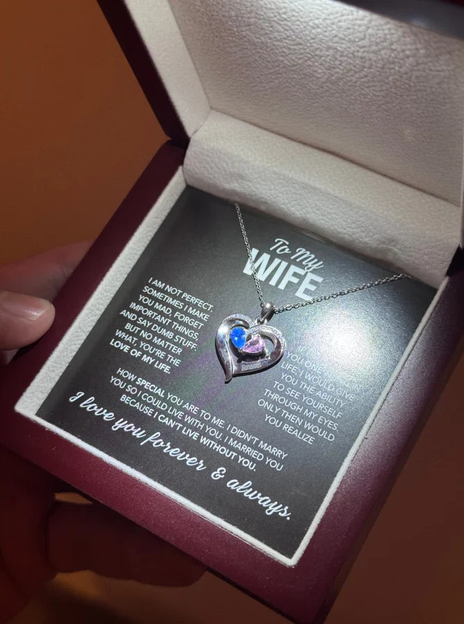 The necklace comes with a pre-set heartfelt message, but it’s chosen to perfectly express love for your wife.